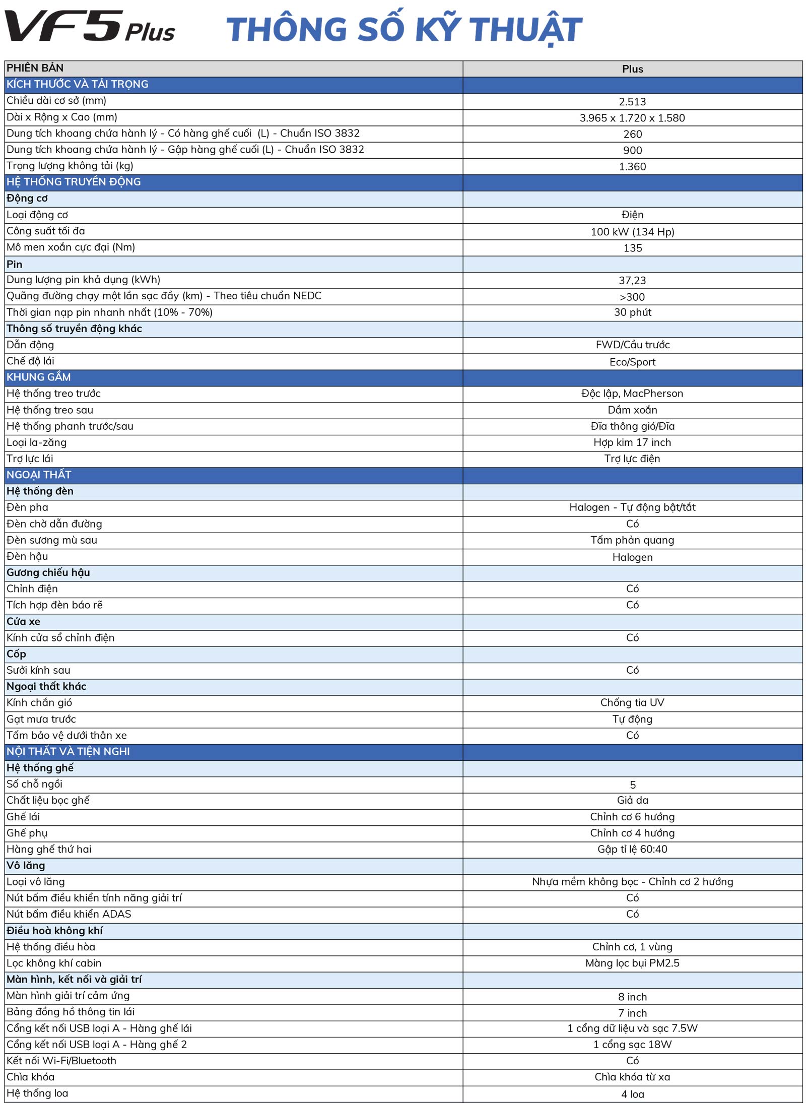 - Dung lượng pin khả dụng 37,23 kWh di chuyển được 326,4 km sau 1 lần sạc đầy.